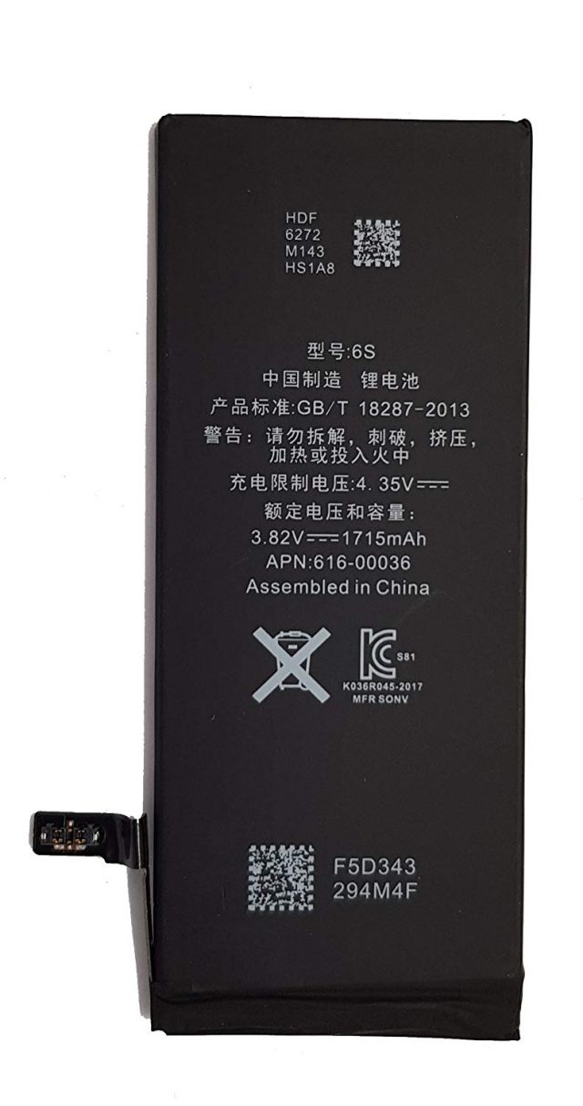 - COMPATIBILIDAD CON TODOS LOS APN ORIGINALES: Bateria interna de repuesto compatible con todos los APN de Apple iPhone 6s original. No se preocupe de qué APN tiene su batería original. Nuestra batería está diseñada para ser compatible con todos ellos. Es compatible con todas las baterías originales con APN 616-00033 / 616-00036